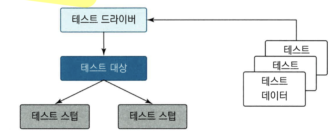 테스트 하니스: 시스템의 일부 기능만 시험하기 위하여 소프트웨어에 변경을 가하는 것. 테스트 완전히 끝나면 제거함.